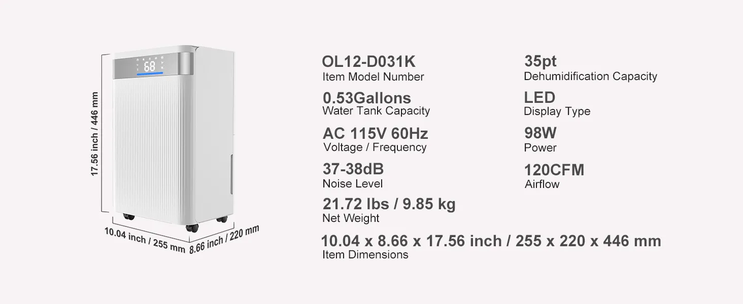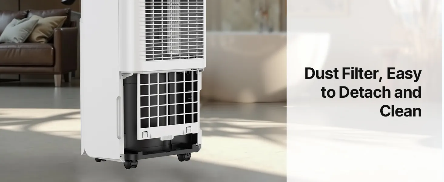 Deshumidificación potente: Este deshumidificador puede extraer hasta 24 pintas de vapor de agua por día a 86 °F y 80 % de humedad relativa (hasta 35 pintas a 95 °F y 90 % de humedad relativa), cubriendo eficazmente espacios de hasta 2500 pies cuadrados. Mantiene toda su casa seca y cómoda.