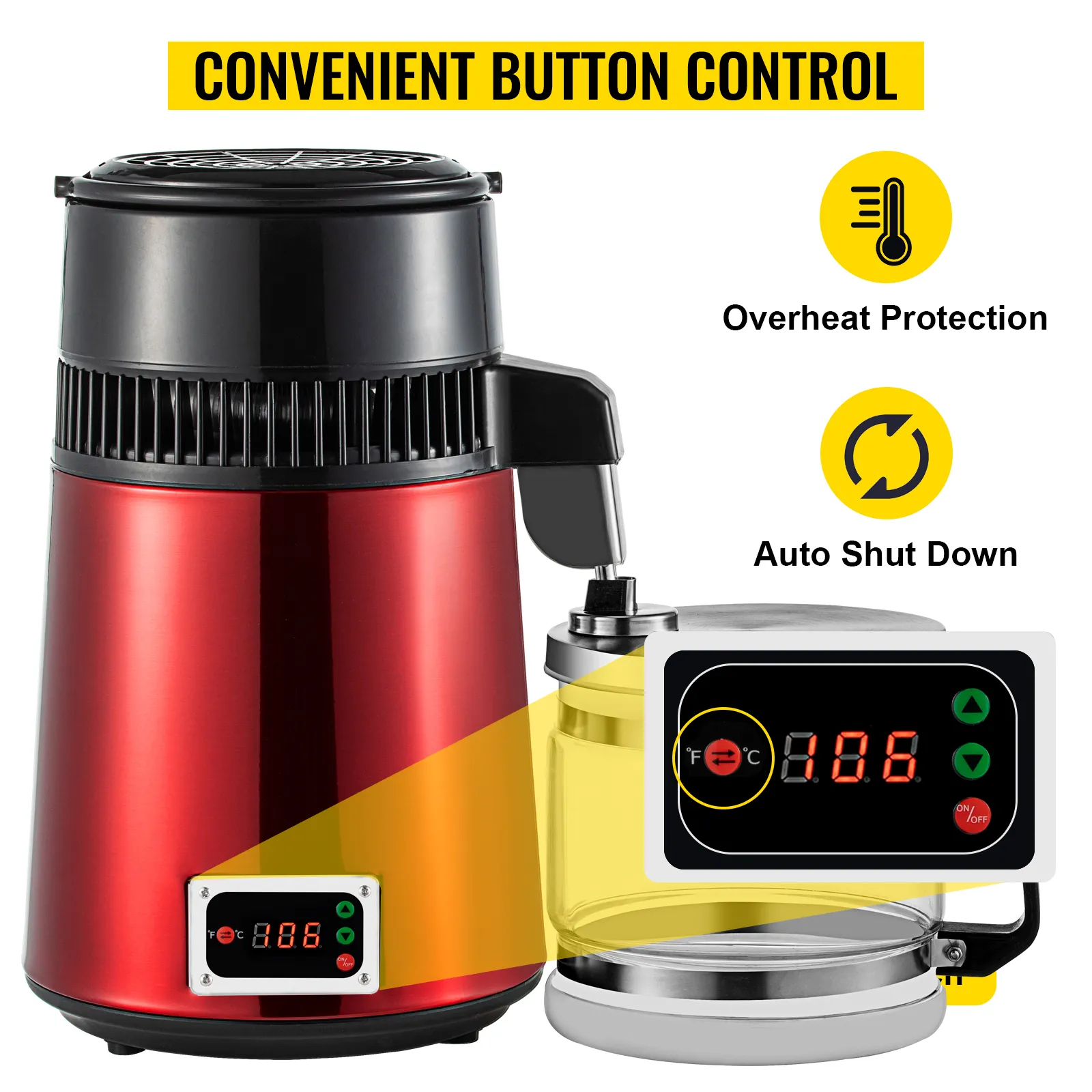 Equipado con una pantalla digital, la temperatura puede ser fácilmente ajustada con distintos botones. Además de destilar agua, también está diseñado para destilar alcohol (la temperatura recomendada para destilar alcohol es de 85-95℃/185-203℉).