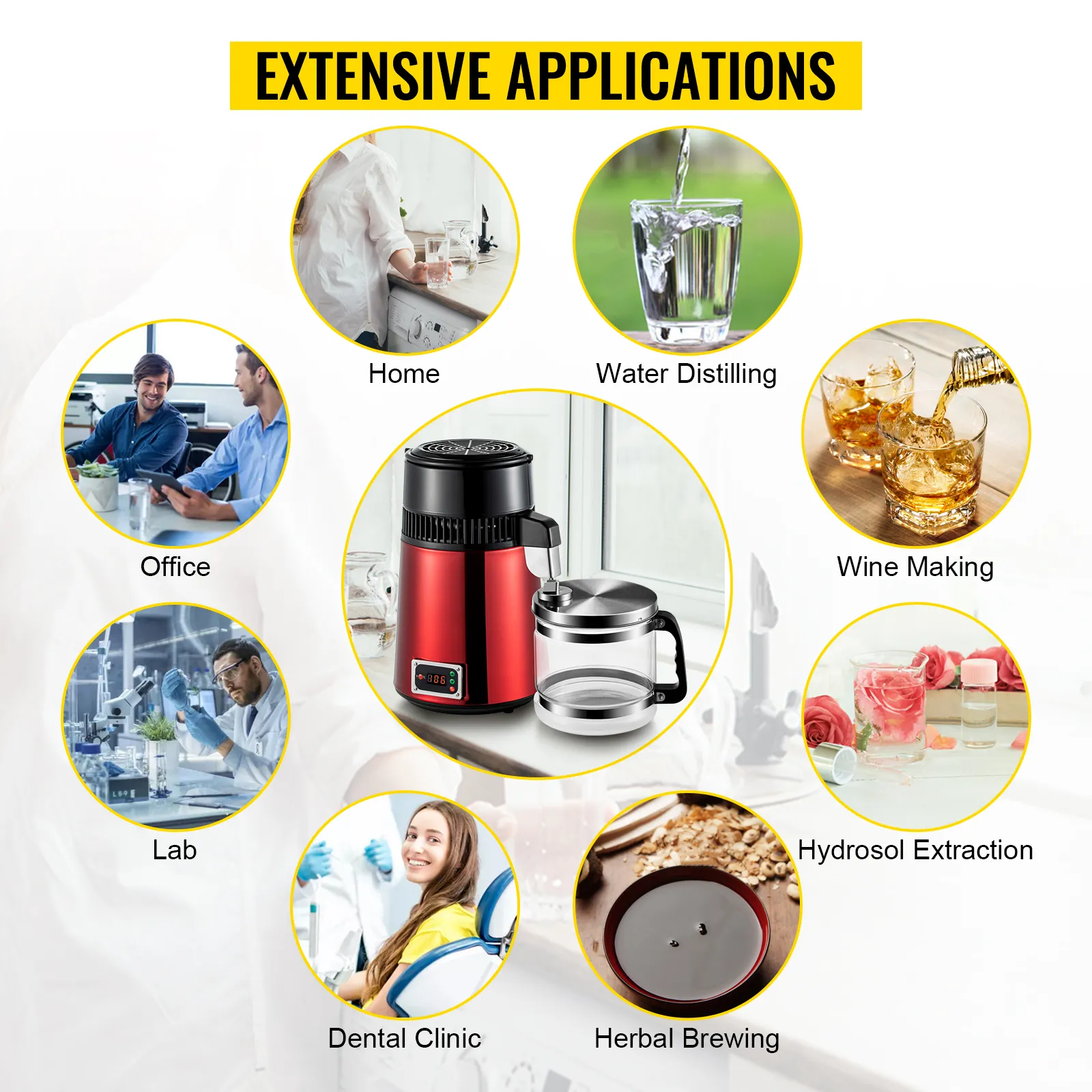 Ideal para destilar agua y alcohol, whisky, brandy, vodka y otros licores destilados. Adecuado para hospitales, clínicas dentales, laboratorios, oficinas, hogares, etc.