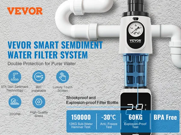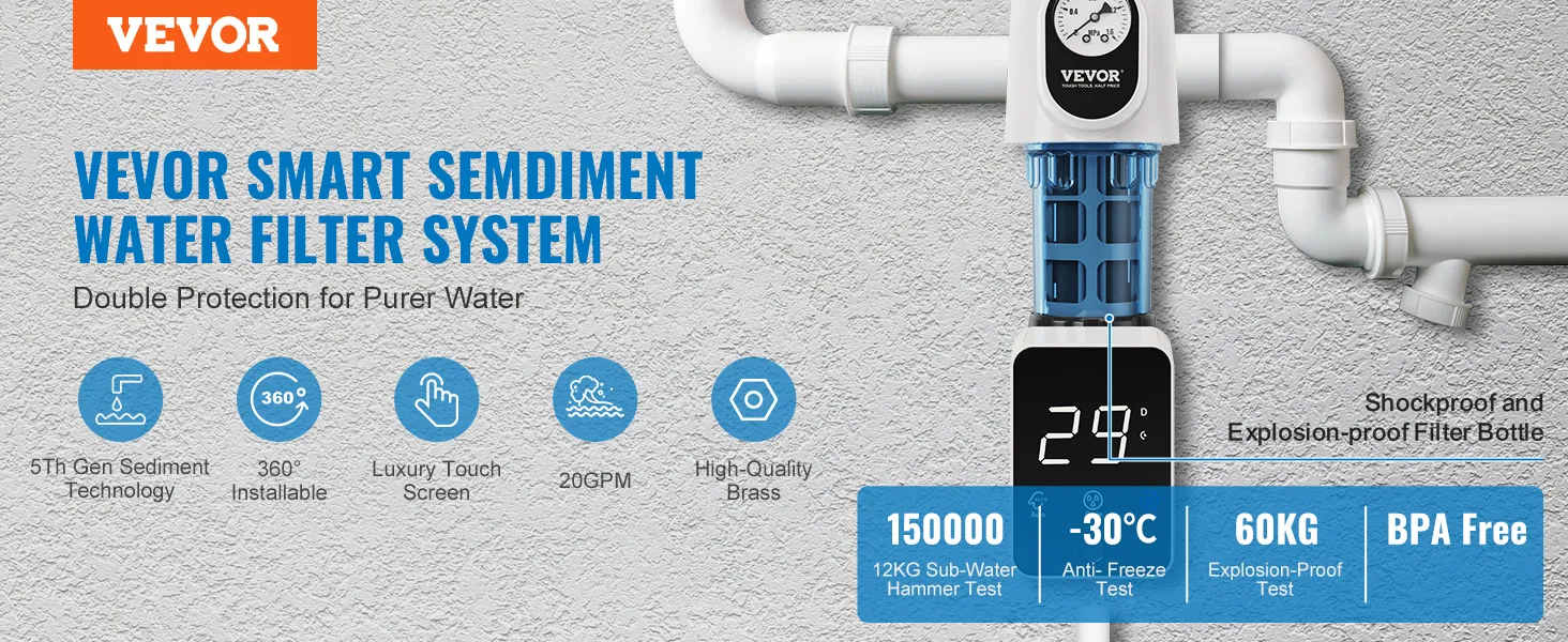 El prefiltro es la primera línea de defensa para los sistemas de agua domésticos, y VEVOR se compromete a mejorar la calidad del agua en la fuente, prolongando la vida útil de los electrodomésticos aguas abajo.