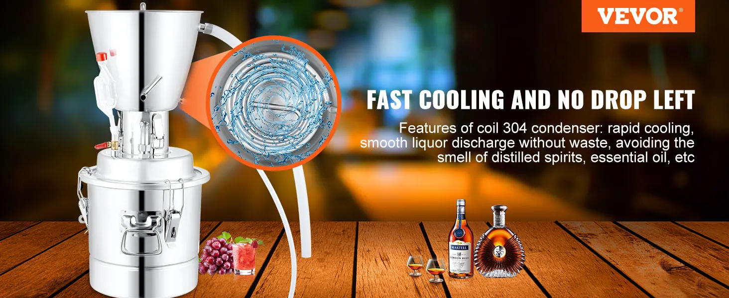 Este juego de alambiques de alcohol es perfecto tanto para principiantes como para profesionales. Utilizando un método de destilación más sencillo y eficiente, con un diseño de condensador de bobina 304, incluso los principiantes pueden destilar whisky, brandy y una variedad de vinos de frutas, agua y aceites esenciales.
