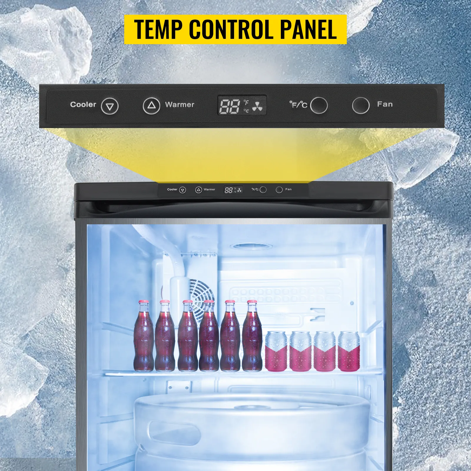 A través del termostato digital, la temperatura del dispensador se puede ajustar de 23 ℉ a 83 ℉ . Además, el botón del ventilador está diseñado para enfriamiento forzado por ventilador, lo que garantiza el mejor sabor de las bebidas.