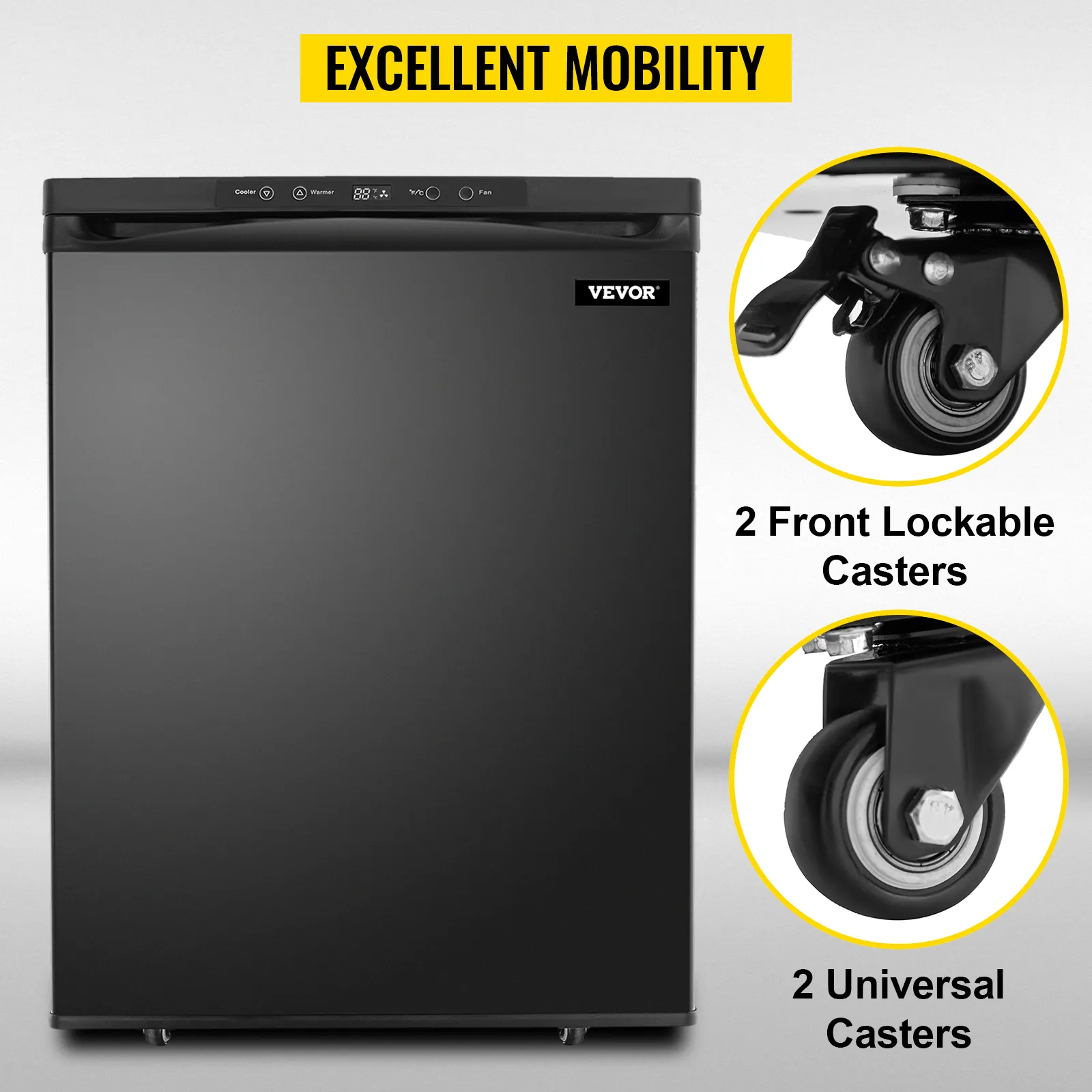Equipado con 4 ruedas universales, este dispensador de barril de cerveza posee una gran movilidad. Es conveniente transportar a todas partes. 2 ruedas delanteras bloqueables pueden sujetar el refrigerador, asegurando la estabilidad de esta máquina.