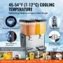 Dispensador de bebidas comercial VEVOR, 2 tanques de 18 L / 19 QT por tanque, dispensador de jugo, máquina de té helado de acero inoxidable de 370 W con temperatura de enfriamiento de 7 °C a 12 °C, para bebidas frías, restaurantes, bares y fiestas.