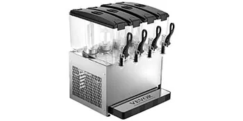 Dispensador de bebidas, con cuatro tanques, 12 l (3,2 gal EE. UU.) por tanque, compacto y de gran rendimiento. Los agitadores ampliados permiten una agitación de 360° más eficiente. Las juntas de sellado de goma eliminan las fugas de jugo.