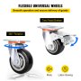 Las 4 ruedas son todas giratorias, que tienen buena capacidad de carga y pueden cambiar fácil y libremente la dirección del movimiento durante el movimiento. Las dos ruedas traseras están equipadas con frenos de pie, que se pueden usar para fijar la dirección de avance del carro o mantenerlo estacionario.