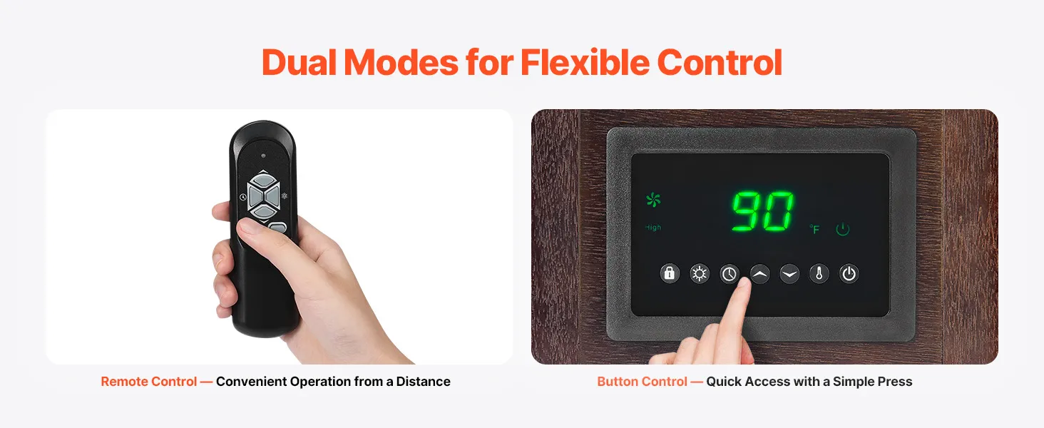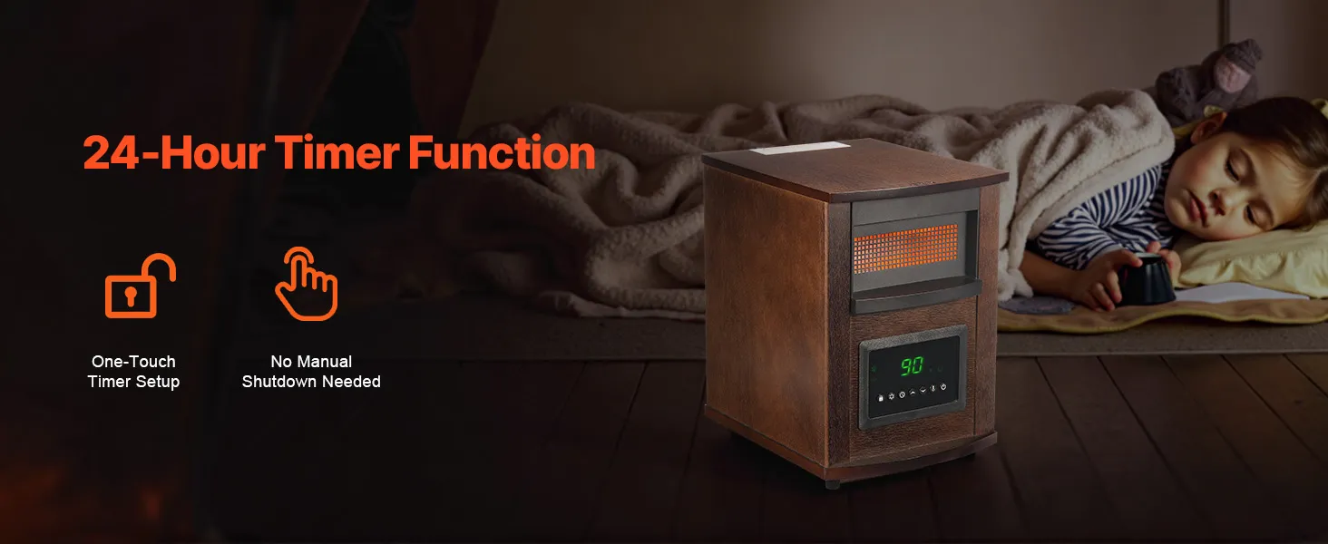 Remote Control: Equipped with a remote control, you can easily adjust the heater without having to get up. In cold weather, a simple fingertip touch gives you control over the warmth, making it easier to enjoy comfort anytime
