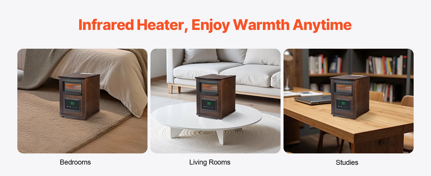 Instant Heating: Equipped with a quartz heating tube, this infrared heater offers high thermal efficiency and even heat distribution. It heats up in just 3 seconds without preheating, instantly surrounding you with warmth during the cold winter