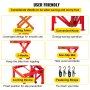 Mesa elevadora hidráulica para motocicleta VEVOR 300LBS, mesa elevadora de tijera roja con correas de sujeción, soporte elevador ajustable para motocicleta