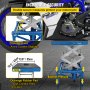 El mantenimiento de su bicicleta es una parte importante de poseerla. El gato para motocicleta cuyo rango de altura de trabajo es de 13,78 a 34,25 pulgadas le ahorrará muchas molestias y muchos dolores y molestias. Mientras tanto, el acolchado antideslizante, la barra de bloqueo y las correas de sujeción garantizan su seguridad durante el trabajo.