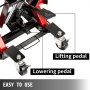 Las dos ruedas delanteras del gato de tijera para motocicleta se pueden bloquear. Por lo tanto, le permiten mover su lugar de trabajo y establecerlo cuando comience a trabajar.