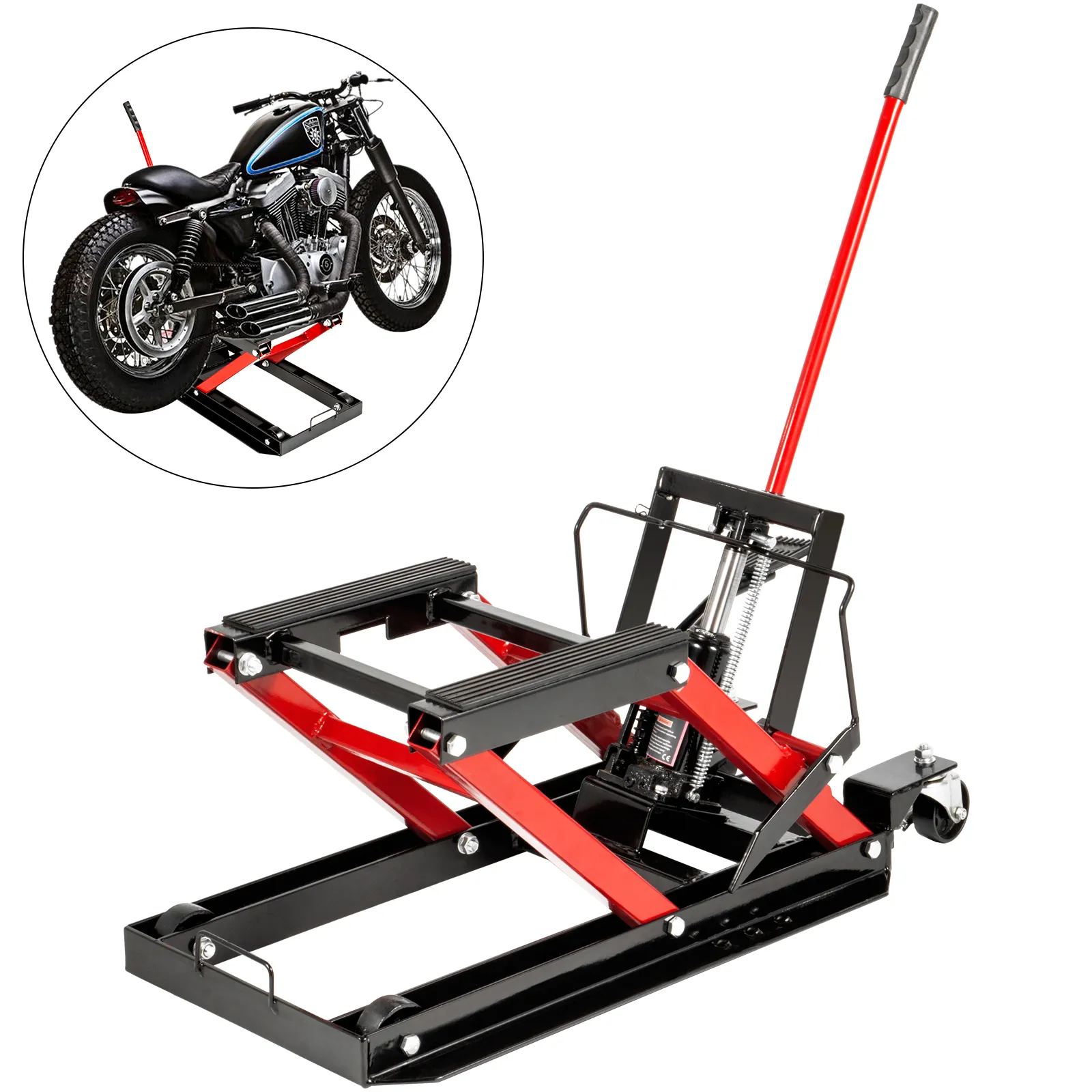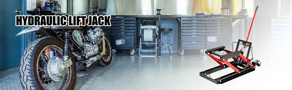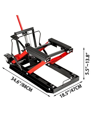 El acero de alta resistencia y el marco de tijera del soporte para motocicleta proporcionarán un fuerte apoyo, una capacidad de elevación máxima de 1700 lb, a la mayoría de las bicicletas e incluso a los vehículos todo terreno.