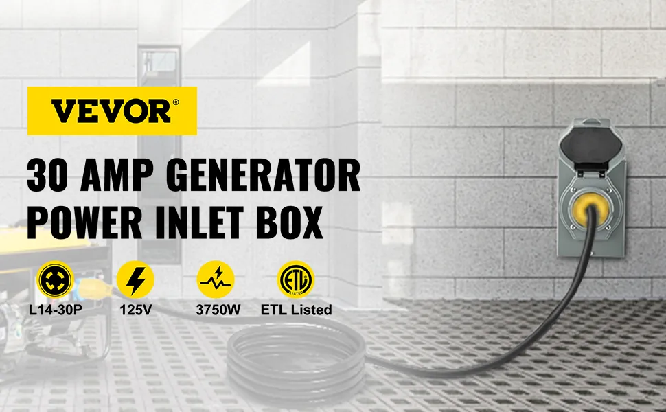 La caja de entrada eléctrica exterior listada por ETL está preparada para un cable de generador L14-30P de 30 amperios. Está diseñado para instalarse al aire libre en un área abierta donde el generador está listo para recibir energía de respaldo durante un corte de energía.
