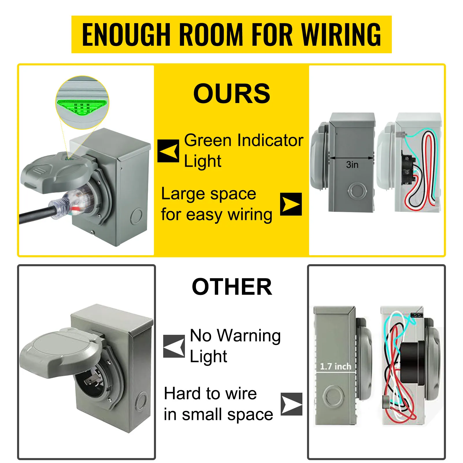 Nuestra caja de entrada de energía es ideal para conectar sus cables a un generador para proporcionar energía en caso de escasez de energía de emergencia. Puede instalar la caja de entrada en paredes exteriores, casas de madera, estacas, troncos de árboles según lo requiera.
