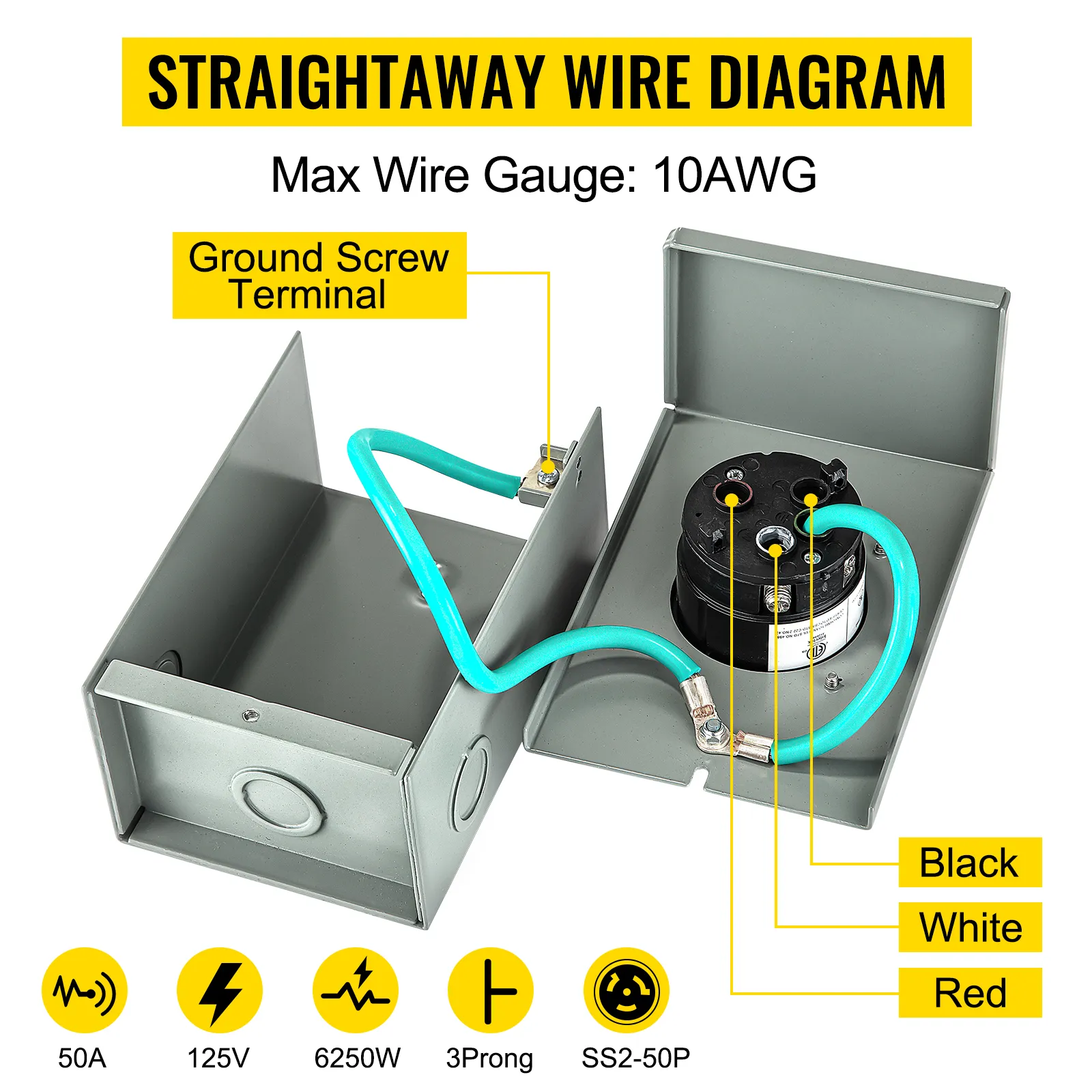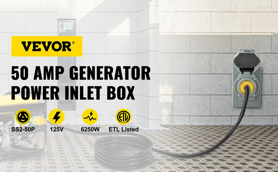 La caja de entrada eléctrica exterior listada por ETL está preparada para un cable de generador SS2-50P de 50 amperios. Está diseñado para instalarse al aire libre en un área abierta donde el generador está listo para recibir energía de respaldo durante un corte de energía.
