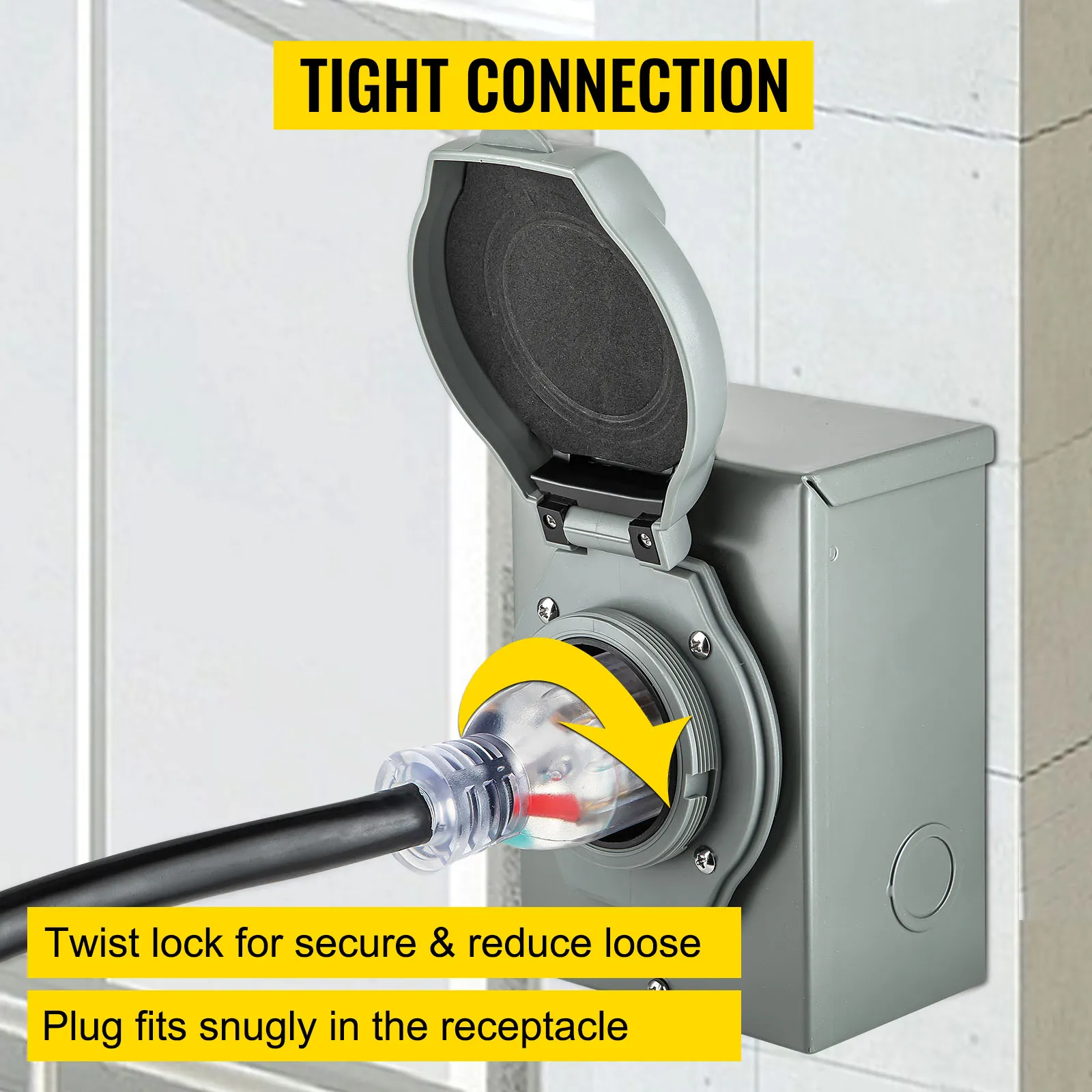 La caja de entrada de energía para generadores adopta el diseño de una estructura de bloqueo. Cuando el enchufe se inserta y gira en la posición de bloqueo, no se deslizará de la caja de entrada de energía debido al viento, huracán, lluvia intensa, nieve, etc.