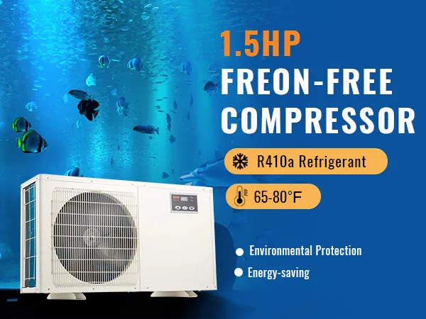 VEVOR Aquarium Water Chiller se enorgullece de su compresor hidropónico de 1,5 HP por su impresionante capacidad para ofrecer una potente eficiencia de enfriamiento y manejar hasta la friolera de 500 galones. Entonces, si posee sistemas hidropónicos o acuarios grandes, este enfriador para acuarios de arrecife de coral es su mejor opción. Teniendo en cuenta el gran volumen de agua, este potente enfriador es necesario para mantener la temperatura óptima para mejorar la salud de sus plantas acuáticas o de su vida.