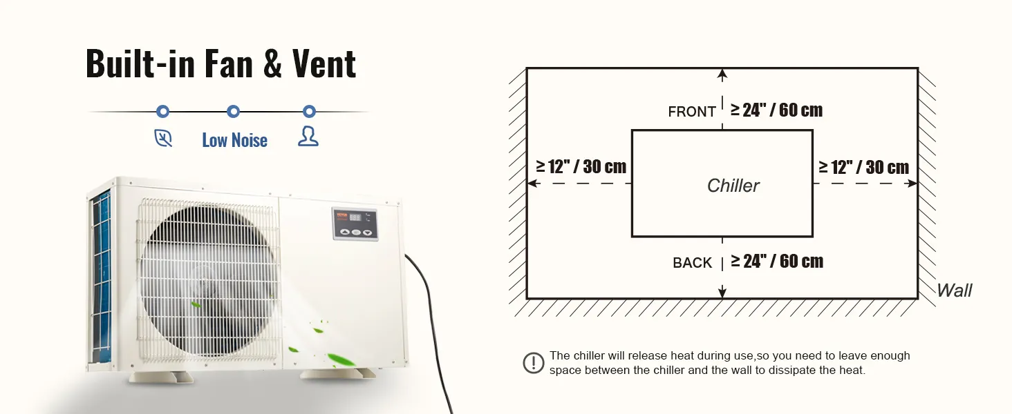Con el enfriador de agua hidropónico VEVOR de 1,5 HP, no es necesario ser estratégico durante la instalación. Este enfriador está equipado con un compresor de refrigeración silencioso que funciona las 24 horas del día sin alterar la serenidad de su entorno. Por lo tanto, ofrece flexibilidad sobre dónde instalar este potente enfriador de acuario de agua dulce. Ya sea en acuarios públicos u hoteles, este enfriador se integra perfectamente en cualquier entorno manteniendo un ambiente tranquilo.