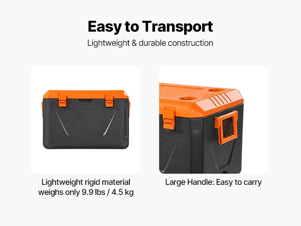 Material liviano: hecho de materiales rígidos livianos, el enfriador pesa solo 9,9 libras/4,5 kg, lo que reduce la tensión del transporte al aire libre.