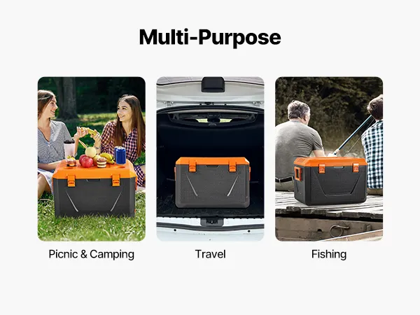 Multiusos: este enfriador portátil es versátil, ideal para actividades al aire libre como picnics, campamentos, viajes y pesca, manteniendo los alimentos y las bebidas frescos durante períodos prolongados.