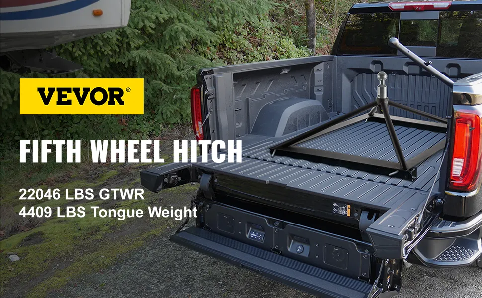 - ¿Alguna vez has pensado en una quinta rueda para un viaje por carretera alrededor del país? VEVOR es la mejor opción que nunca te perderías. ¡Es fuerte, robusto y simple! ¡El enganche de remolque ofrece una experiencia increíble para remolcar y montar! Enganche su camión y remolque en un instante, luego disfrute de un viaje tranquilo y tranquilo. Remolca tus preocupaciones y muévete con VEVOR.