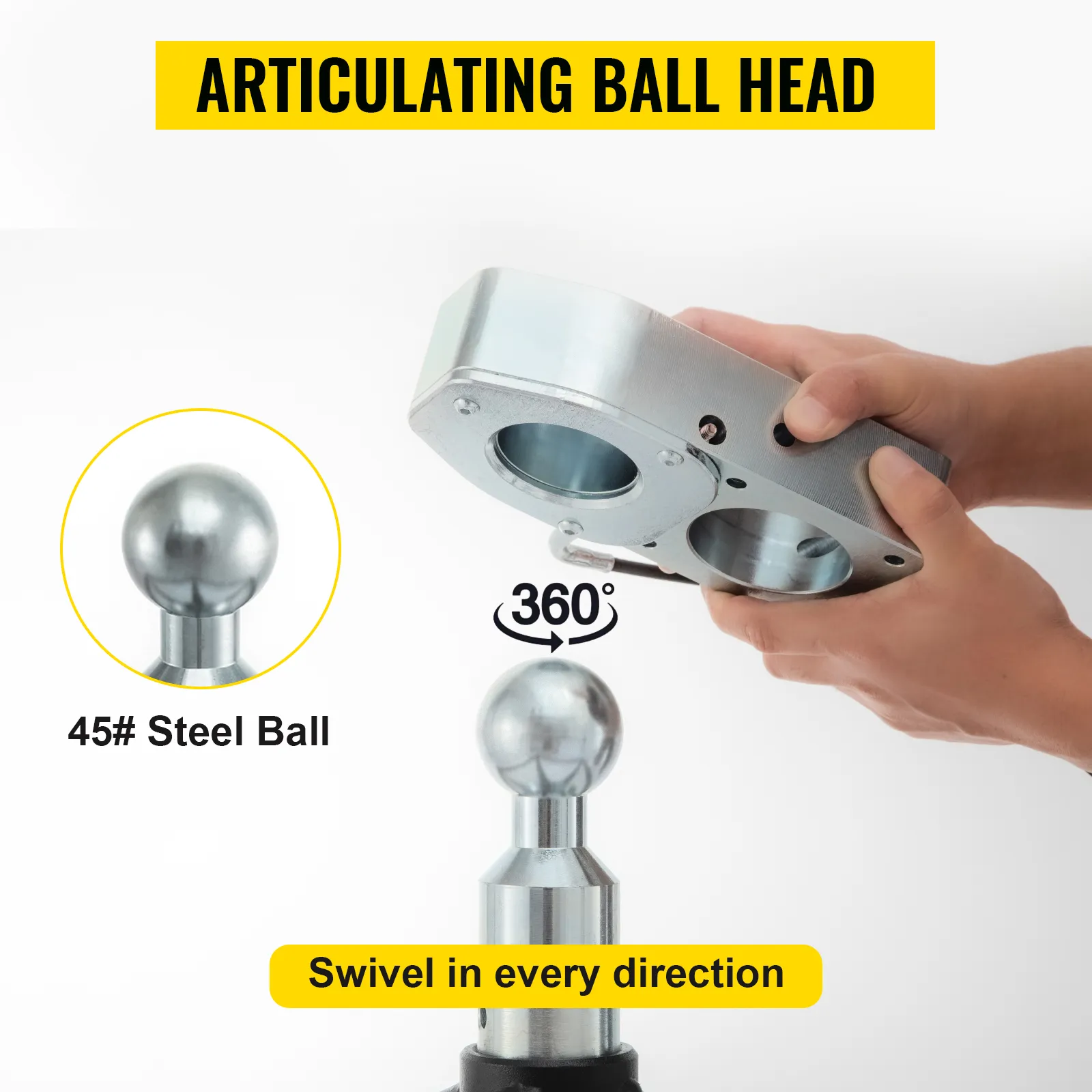 Hecha de acero n.° 45 de alta resistencia, la cabeza esférica del enganche proporciona el movimiento pivotante necesario para remolcar el remolque sin problemas.