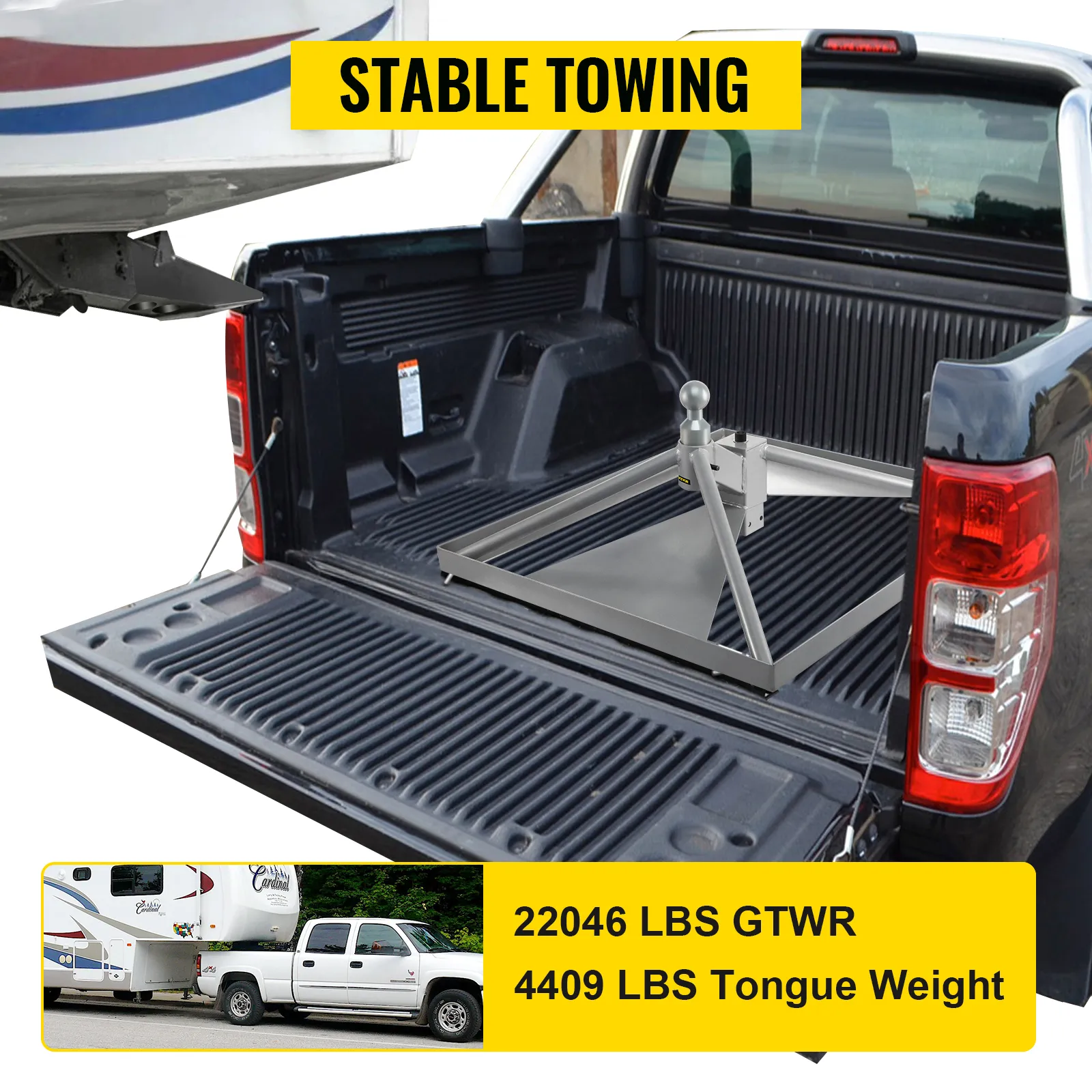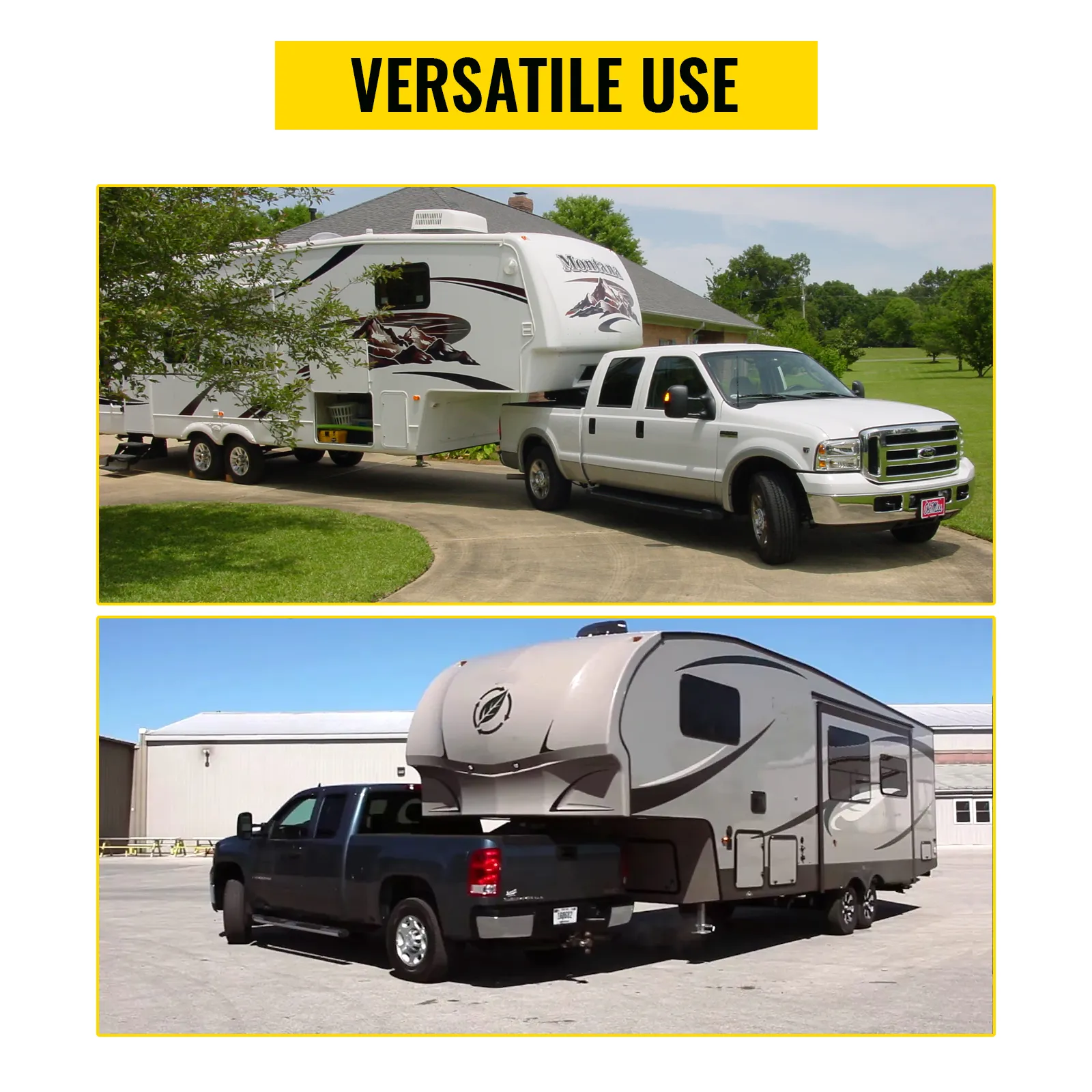 ¿Alguna vez has pensado en una quinta rueda para un viaje por carretera por el país? VEVOR es la mejor opción que nunca te puedes perder. ¡Es fuerte, robusta y sencilla! ¡El enganche de remolque ofrece una experiencia increíble para remolcar y montar! Engancha tu camión y remolque en un instante, luego disfruta de un viaje tranquilo y sin problemas. Remolca y sigue adelante con VEVOR.
