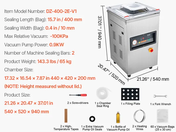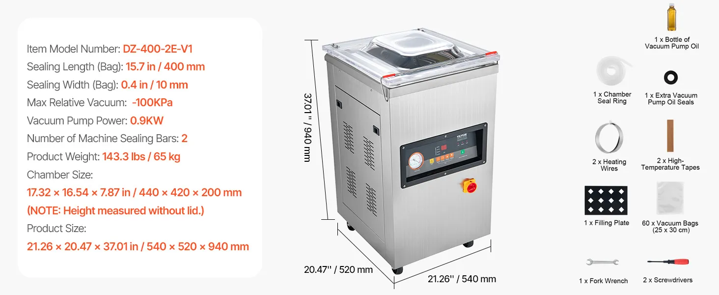 Alarga la vida de tus alimentos eliminando el aire y creando un sellado perfecto con este aspirador automático. Con una longitud de sellado de 400 mm y un tamaño de cámara de 17,32 x 16,54 x 7,87 pulgadas, este sellador mantiene sus alimentos frescos y conserva su sabor y sabor. La potencia de sellado de 600 W permite que este sellador funcione rápidamente para permitirle realizar mucho trabajo en menos tiempo. El sistema silencioso de 70 decibeles le ayuda a trabajar sin problemas sin que le moleste el ruido. Entonces, si está buscando un sellador de primera calidad para realizar sus tareas de sellado de manera placentera, este sellador al vacío de cámara es lo que necesita. ¡Cómpralo hoy y mejora tu flujo de trabajo!