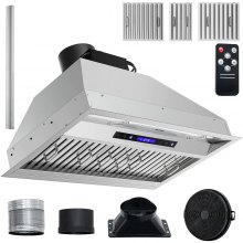 VEVOR Campana extractora de inserción, 800 CFM de 3 velocidades, ventilación de cocina integrada de acero inoxidable de 30 pulgadas con control de botón, luces LED, filtros deflectores, convertible con conducto/sin conducto, certificación ETL