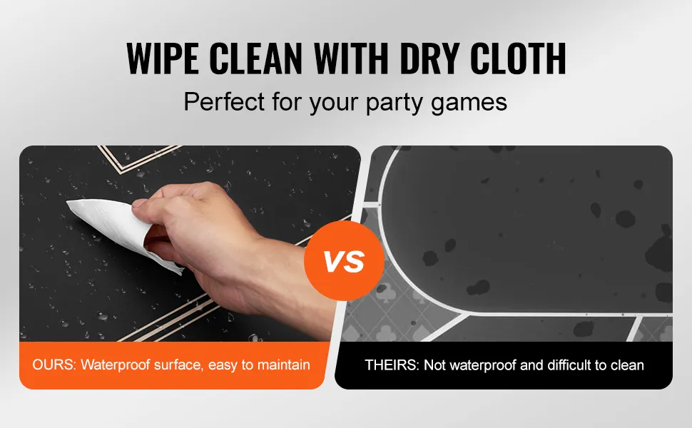 El material de la superficie está tratado con tecnología impermeable, es suave y resistente al agua, por lo que no tendrá que preocuparse por derrames durante el juego. Simplemente límpielo con un paño seco, sin dejar marcas de agua ni manchas, lo que le permitirá ahorrar tiempo y esfuerzo para un proceso de juego más fluido.