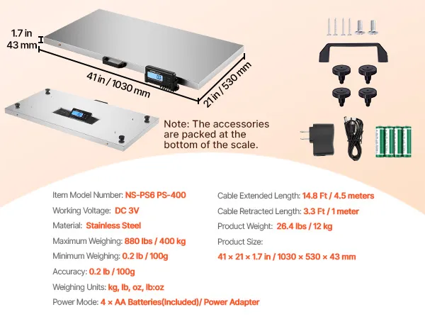 【BÁSCULA DIGITAL DE ACERO INOXIDABLE】- Fabricadas con materiales de acero inoxidable de alta calidad, nuestras básculas de 103 x 53 cm (40,6 x 20,9 ") son tan duraderas como funcionales.