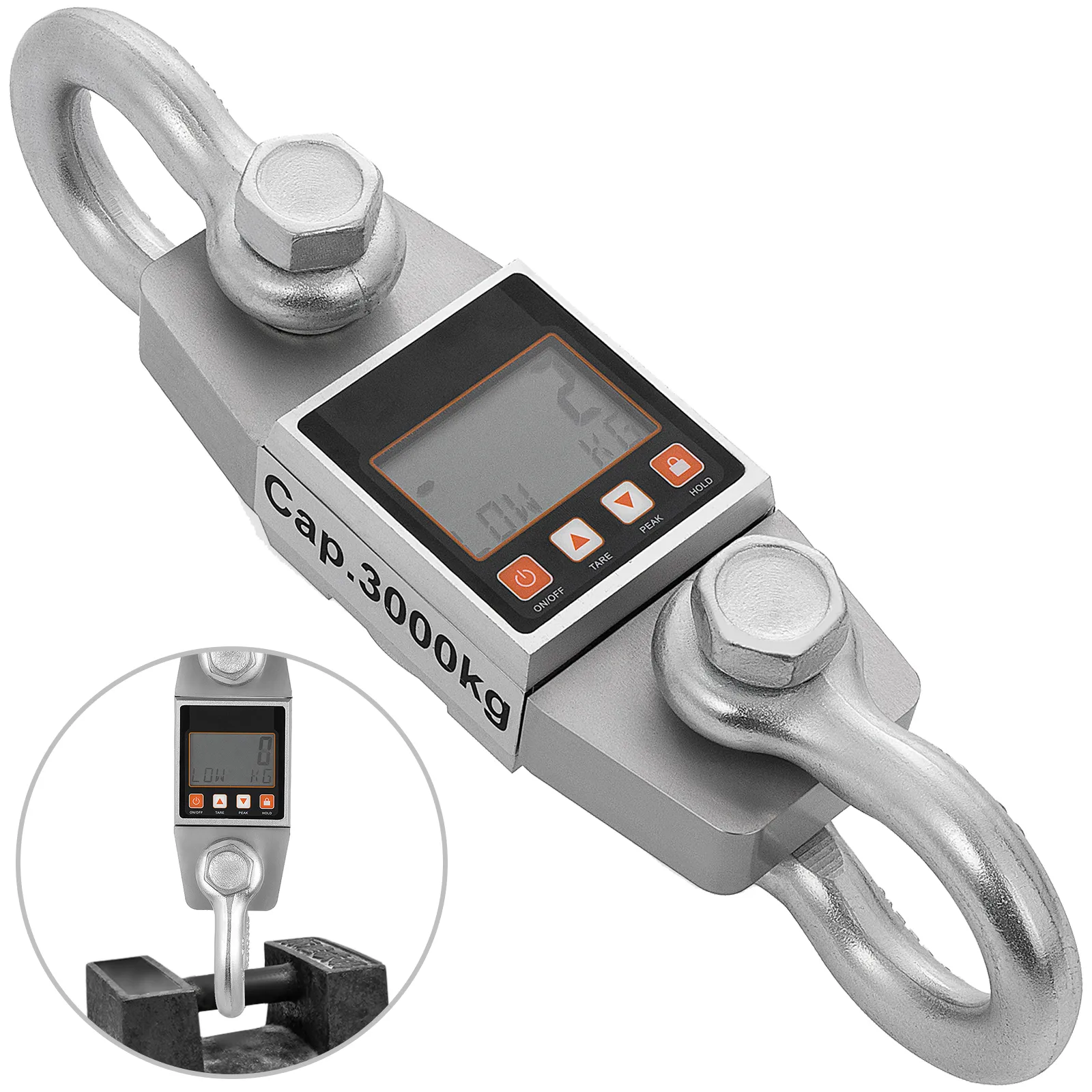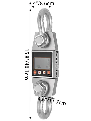 Esta báscula de grúa portátil tiene una capacidad máxima de pesaje de 3 toneladas/6600 lb. Los usuarios pueden colocar la báscula colgante en algo como una grúa mecanizada para levantar cosas muy pesadas.