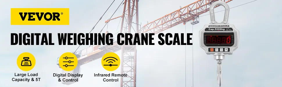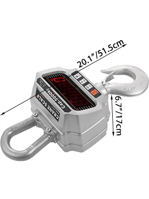Esta báscula de grúa portátil tiene una capacidad máxima de pesaje de 5 toneladas/5000 kg. Los usuarios podían colocar la báscula colgante en algo parecido a una grúa mecanizada para levantar cosas muy pesadas.