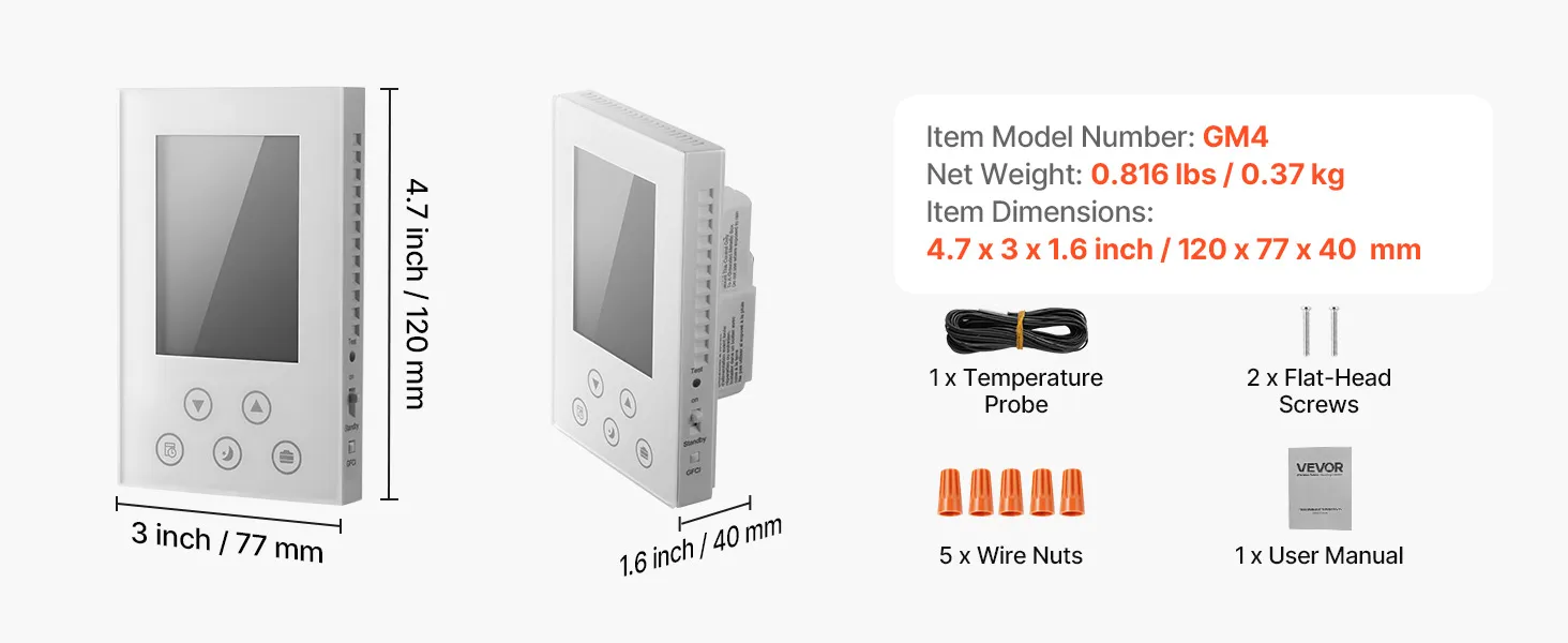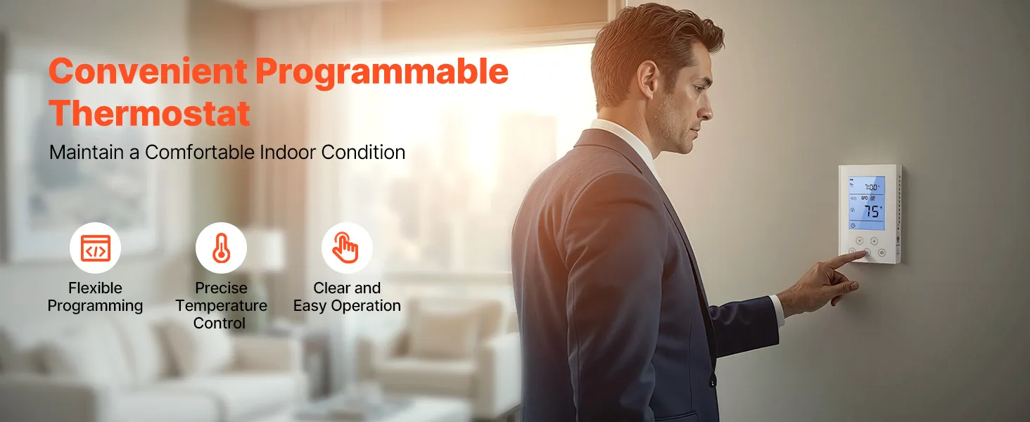 Termostato programable VEVOR de 7 días, termostato para el hogar compatible con calefacción radiante por suelo, bomba de calor, interruptor diferencial integrado y sensor de alta sensibilidad, pantalla LED retroiluminada, bajo consumo, blanco
