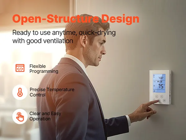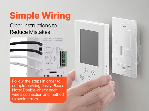 Control práctico: Con botones de respuesta rápida, este termostato doméstico permite controlar fácilmente la fecha, la temperatura, la humedad y el cambio de modo. Su diseño inteligente reduce los errores de operación para una mejor experiencia de usuario.
