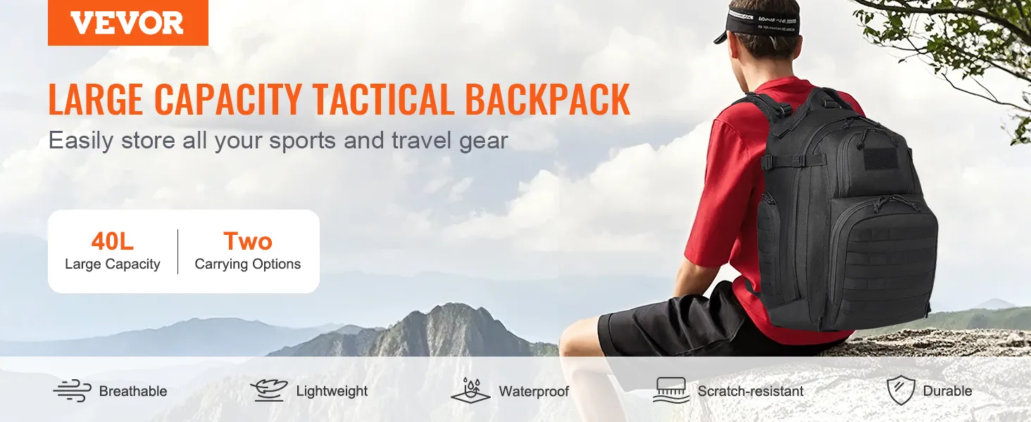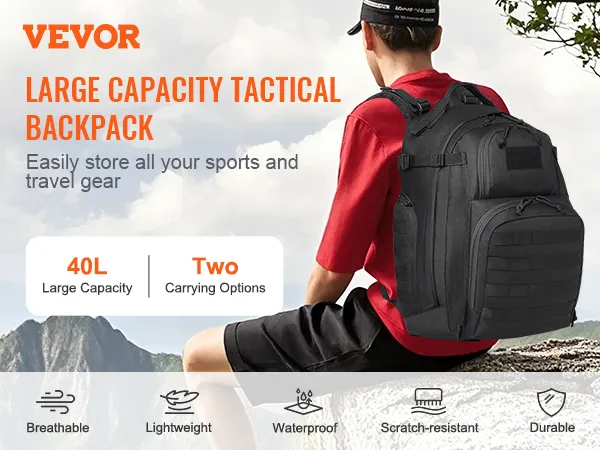 Esta mochila táctica puede funcionar como bolso de mano y como bolso de hombro, y ofrece una amplia capacidad de 40 litros para guardar ropa, zapatos y otros elementos esenciales de viaje. Está confeccionada con materiales transpirables, livianos, impermeables y resistentes a los rayones para una mayor durabilidad.