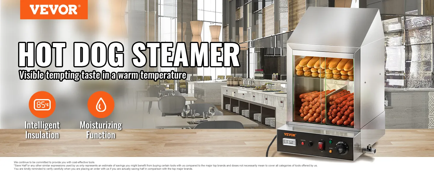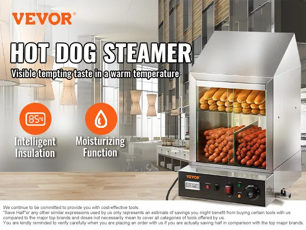 Deja que tus hot dogs y salchichas destaquen. Al elegir el calentador para hot dogs de VEVOR con función integrada de calentamiento y exhibición, puede mostrar a sus clientes tentadores hot dogs y panecillos mientras los almacena en un ambiente higiénico. Lleva tu negocio al siguiente nivel con VEVOR.