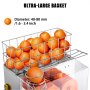 Si un extractor de jugo puede extraer jugo de una gran cantidad de frutas en una sola pasada, le ahorrará tiempo y esfuerzo. También agilizará el proceso de exprimido y le permitirá satisfacer las altas demandas de los clientes rápidamente. Aquí, la máquina exprimidora comercial VEVOR maneja un gran volumen de naranjas de manera rápida y efectiva. Su cesta de almacenamiento de gran tamaño minimiza la necesidad de recarga constante. Además, esta máquina puede procesar naranjas que varían en tamaño desde 1,6 pulgadas hasta 3,1 pulgadas de diámetro. Esta versatilidad permite que este exprimidor de naranjas maneje diferentes tamaños de naranjas que se encuentran comúnmente en el mercado.