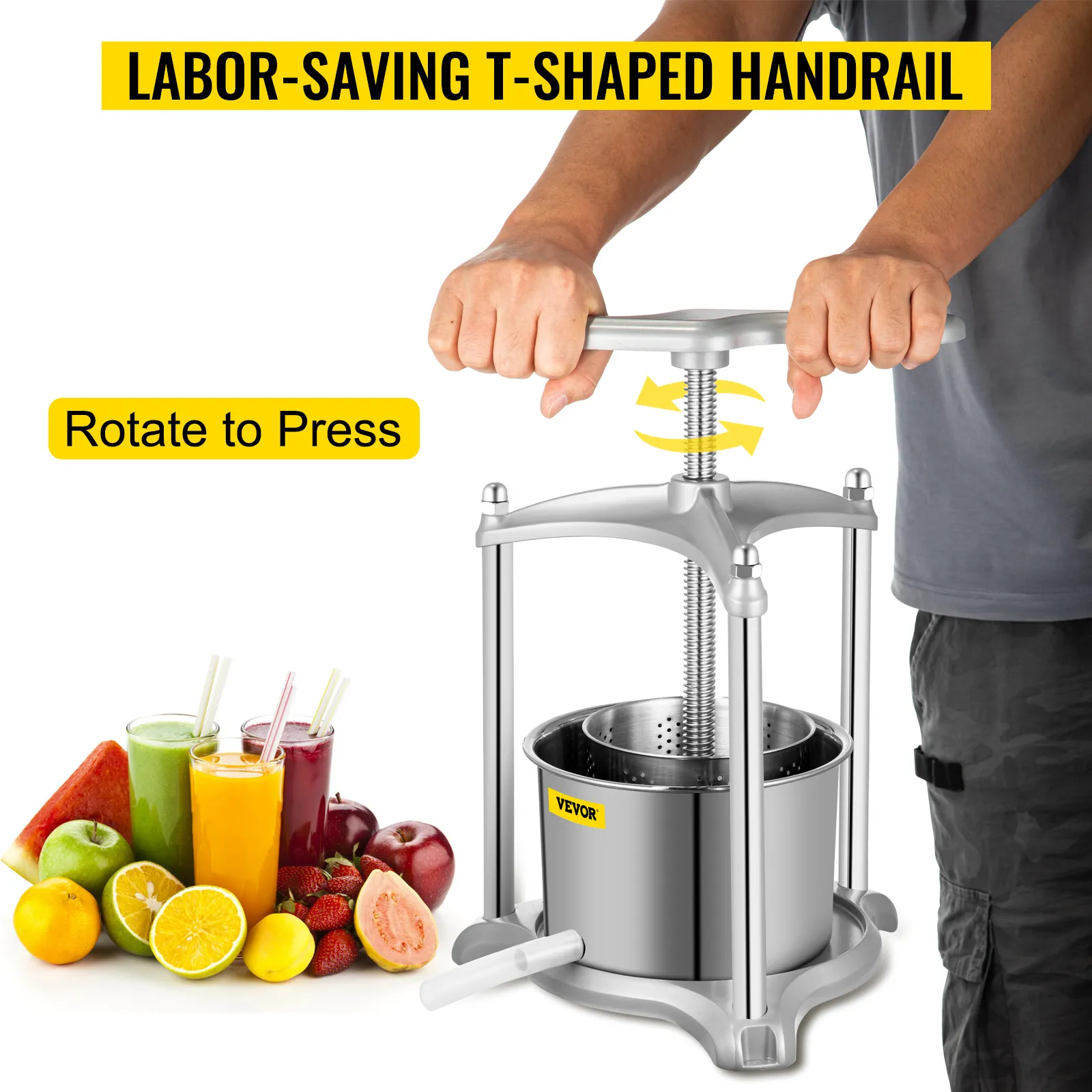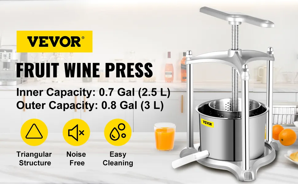 Nuestra prensa de vino de frutas manual de 3 L puede despertar su anhelo de una vida tranquila. Es un gran placer tener una taza de bebida totalmente hecha a mano en su tiempo libre. Hecho de acero inoxidable apto para alimentos, este prensador de vino es perfecto para la extracción de jugo y puede soportar un uso prolongado. Los barriles dobles, la estructura triangular estable y el pasamanos que ahorra trabajo le brindan muchas comodidades. Después de exprimir, también es fácil lavar todas las partes por separado y a fondo.
