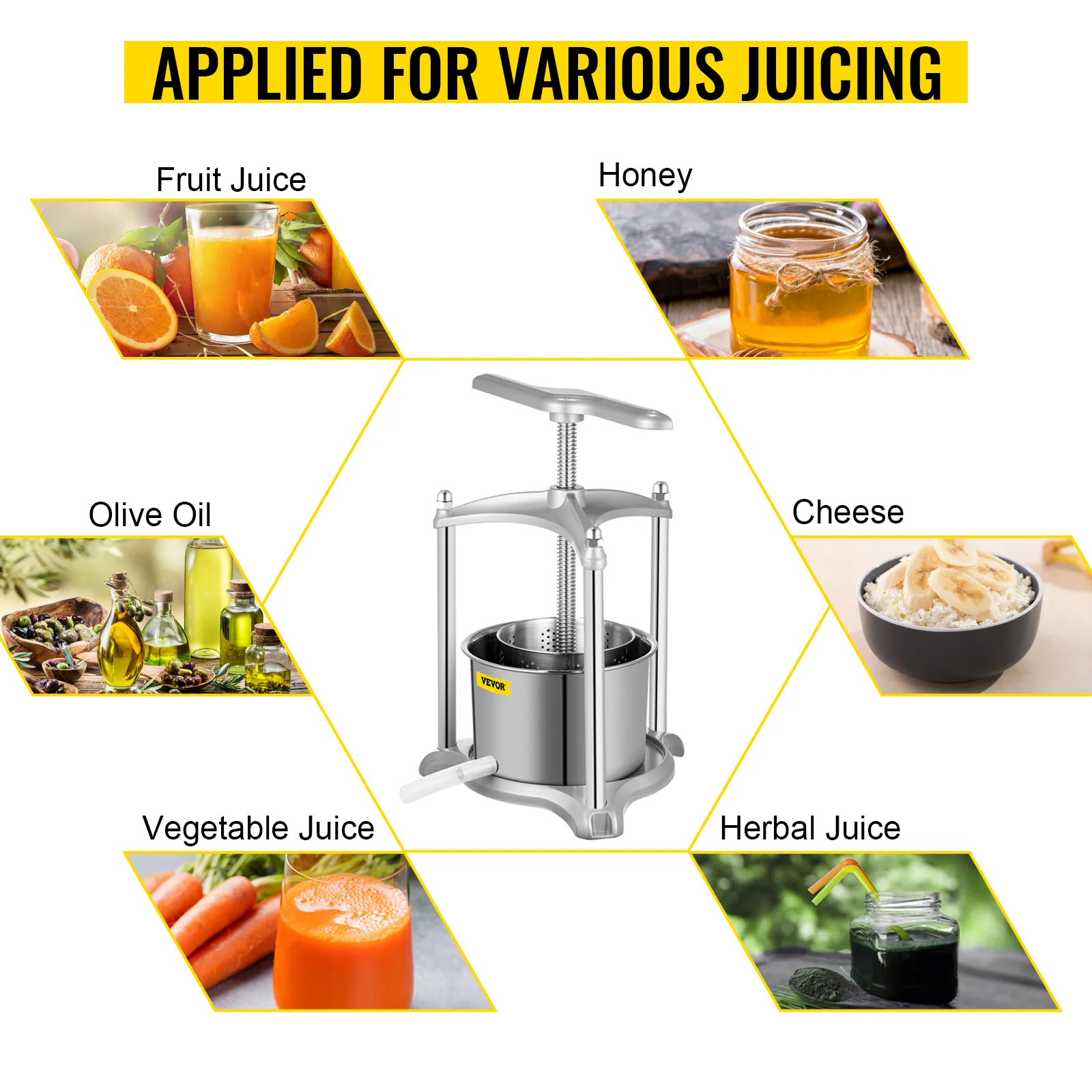 Esta prensa de vino manual presenta amplias aplicaciones. Se puede aplicar a la elaboración de vino en casa y extracción de aceite de oliva. También es adecuado para prensar queso, frutas, verduras, hierbas y tinturas como prensador multifuncional.