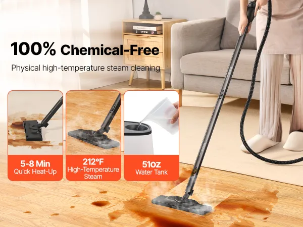 Calentamiento rápido en 5 minutos: con nuestro sistema de atomización inteligente y una potencia de 1500 W, este limpiador a vapor se calienta en 5 a 8 minutos. Puede ajustar fácilmente el flujo de vapor para limpiar baldosas, mármol, pisos de madera, alfombras y vidrio. Nota: la potencia puede variar según la región.