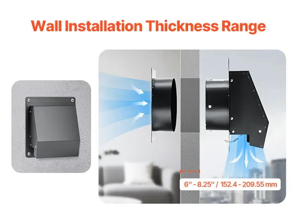 Compatible Installation Walls: The through-the-wall ventilation fan is compatible with wall thicknesses ranging from 6in to 8.25in, making it suitable for installation between the walls of your bathroom, garage, laundry, storage room,and more