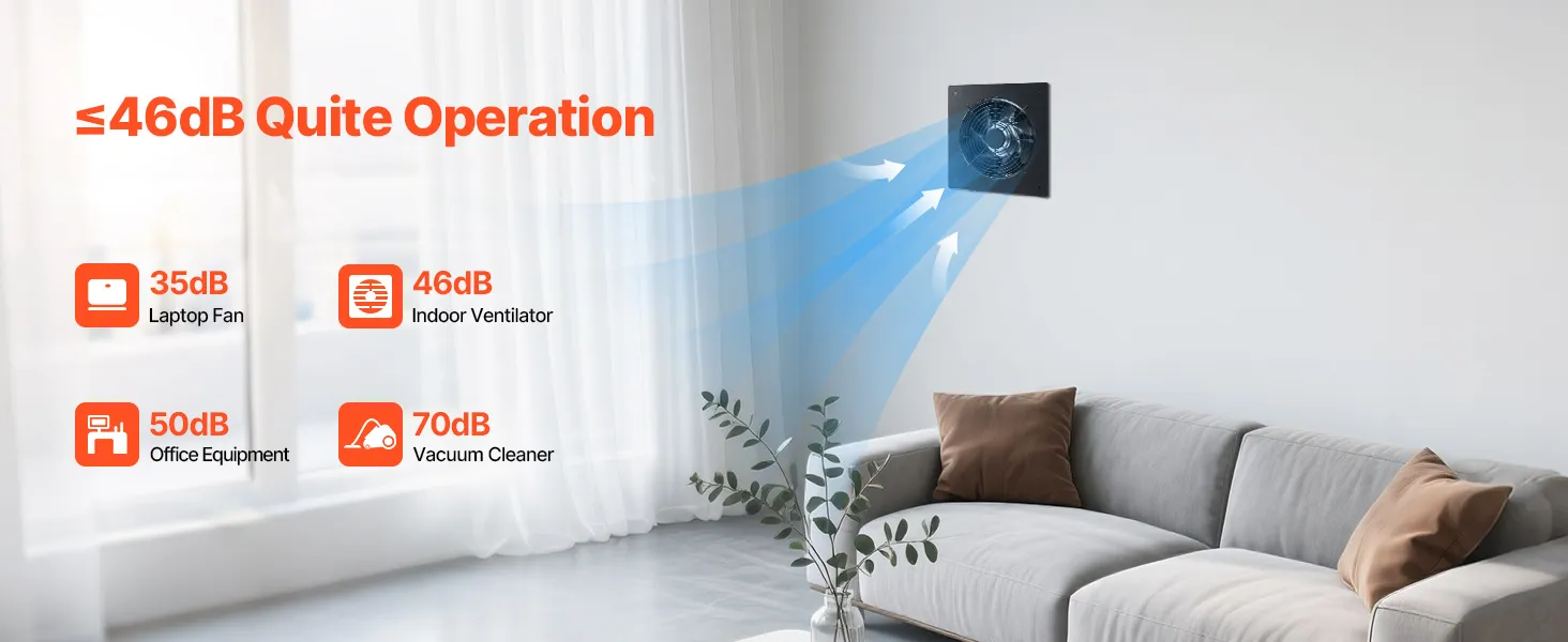 Is your living room or bedroom affected by humidity? Improve air quality with an indoor ventilation fan. Built-in AC motor with high airflow, effectively improving air circulation. It comes with complete installation accessories, and the panel is pre-drilled to make installation easy.