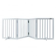 VEVOR Freestanding Pet Barrier, 24" Height x 80.3" Width, 4-Panel Folding Dog Gate for Various Openings, Expandable and Quiet Foot-Supported Indoor Dog Fence, White