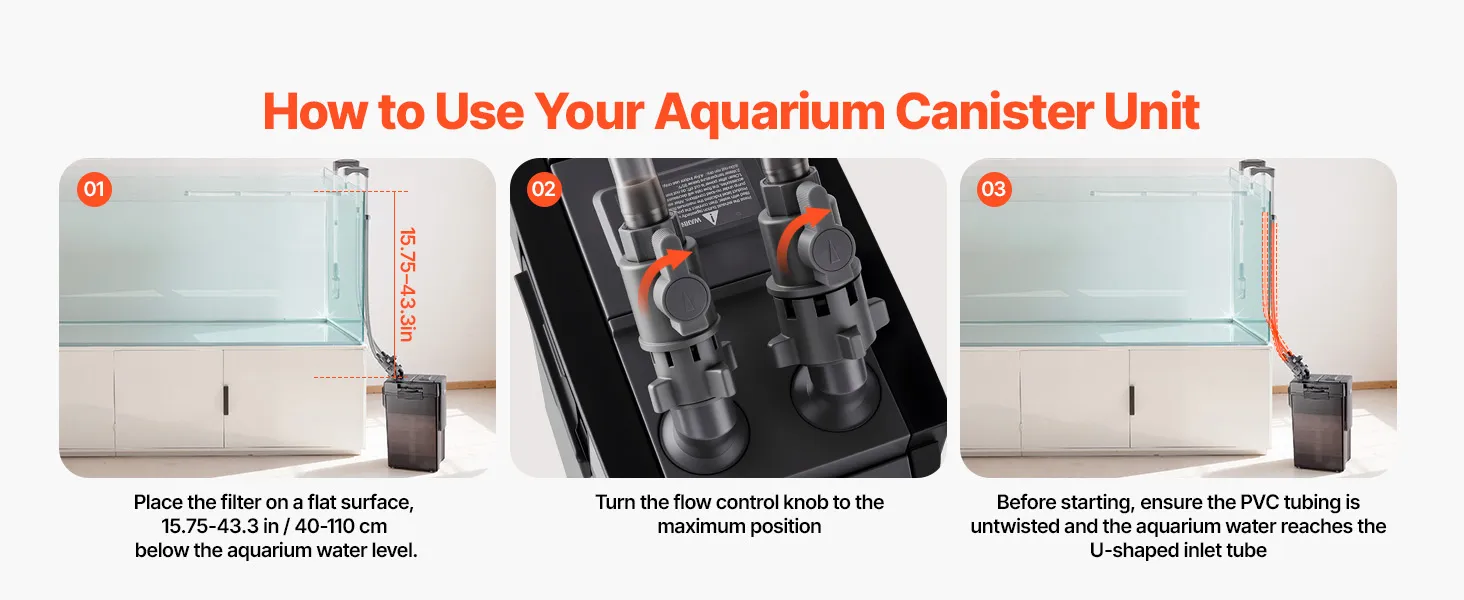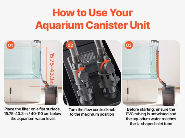 Purificación de agua potente: El filtro externo es apto para acuarios de 125 a 150 galones. Su bomba de agua de 528 GPH (36,5 W) circula el agua para una mayor claridad. Tras la conexión, el caudal puede disminuir ligeramente debido a la altura de la tubería y los consumibles, pero la filtración no se ve afectada.