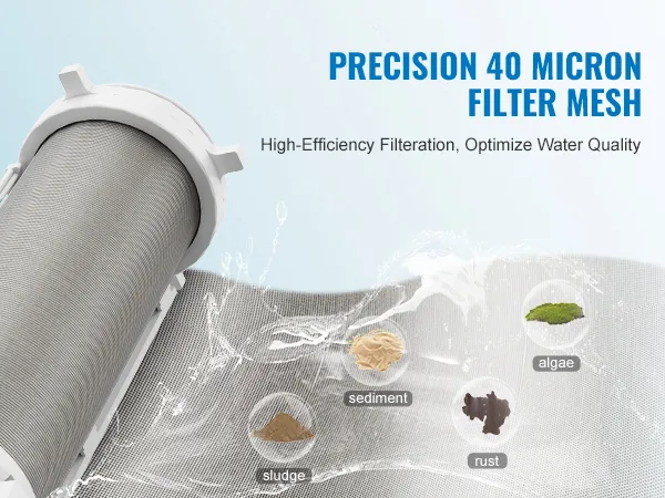 Fine Filtration: 40μm fine filtration effectively intercepts large particles such as sediment, rust, sludge, moss, microorganisms. Suitable for filtering municipal tap water, well, and lake, improving water quality from the source, protecting faucets, water purifiers, washing machines, dishwashers, water heaters, and other water-related household appliances.