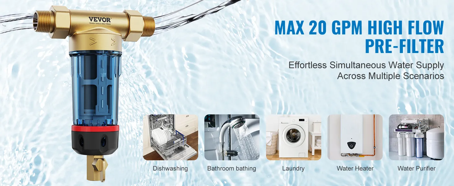 The pre-filter is the first line of defense for home water systems, and VEVOR is committed to improving water quality at the source, prolonging the lifespan of household appliances downstream.