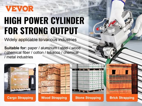 Perfect for Various Industries: Whether you're in paper, aluminum, steel, wood, chemical fiber, cotton, tobacco, chemical, or metal products, our pneumatic strapping tool is here to help. It handles everything from wood boards and marble to bricks and steel, boosting your efficiency and product quality across the board.