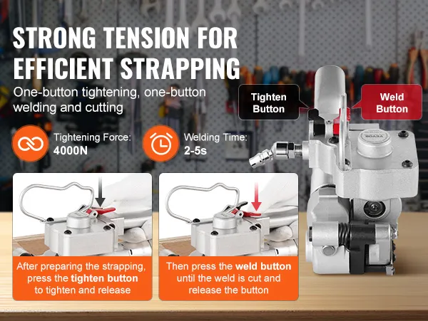 Easy to Use: This pneumatic banding tool is super easy to use. With friction heat welding, you don't need buckles—just one button to tighten and another to weld. Even beginners can get the hang of it quickly with minimal training. It's a real time-saver, letting you handle lots of packages fast and efficiently.