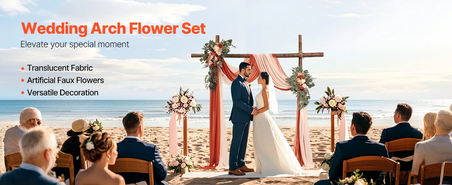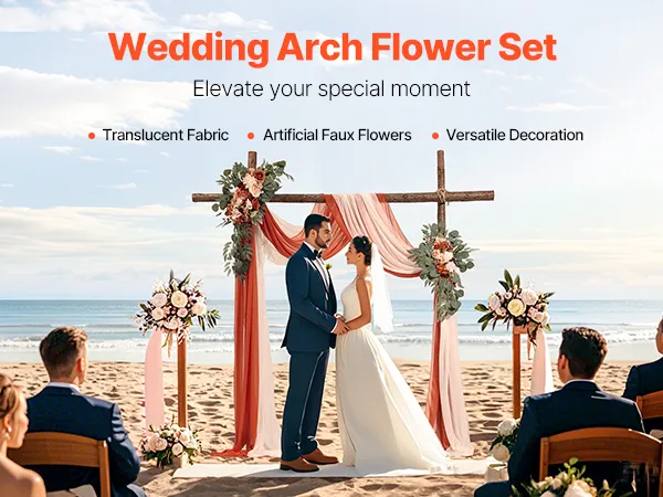 VEVOR Kit de Arcos de Flores Artificiales Naranja para Bodas, con Cortinas, 2 Piezas de Arreglos Florales, 2 Piezas de Cortinas Transparentes, para Ramos de Ceremonia, Decoración de Fondo de Recepción